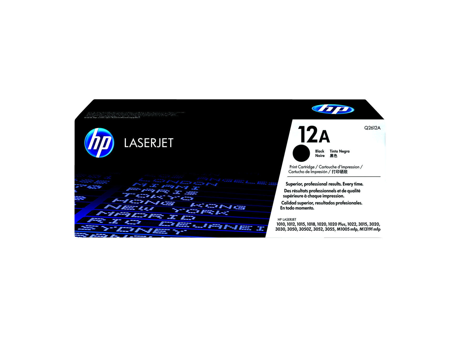Original Black HP are committed to producing cost-effective toners and the HP Q2612A is no exception with a yield of 2000 pages. The HP 12A Cartridge is filled with HP’s highest quality smudge and fade resistant toner, so you can be assured your documents are going to look perfect every time. HP 12A USED IN 1010/1012/1018/1020/1022/3055 PRINTERS.