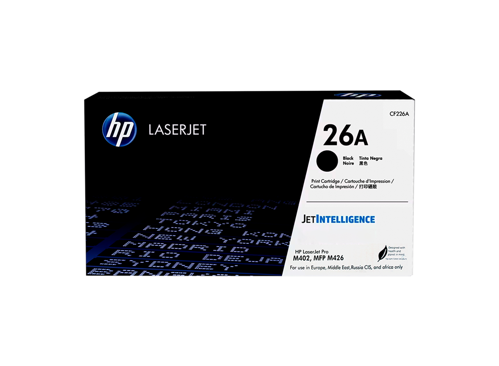 HP 26A toner includes HP Jet Intelligence, a feature that helps ensure the highest degree of quality and print speed out of your printer.